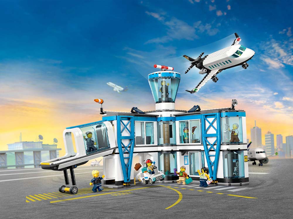 • Модель аэропорта: детская игра станет незабываемой с этим набором LEGO® City Airport with Airplane (60502) для детей от 8 лет, включающим в себя терминал аэропорта, пассажирский самолет и 9 минифигурок.