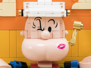 Стенд с разнообразными деталями минифигурок, чтобы собрать уникального человечка LEGO!