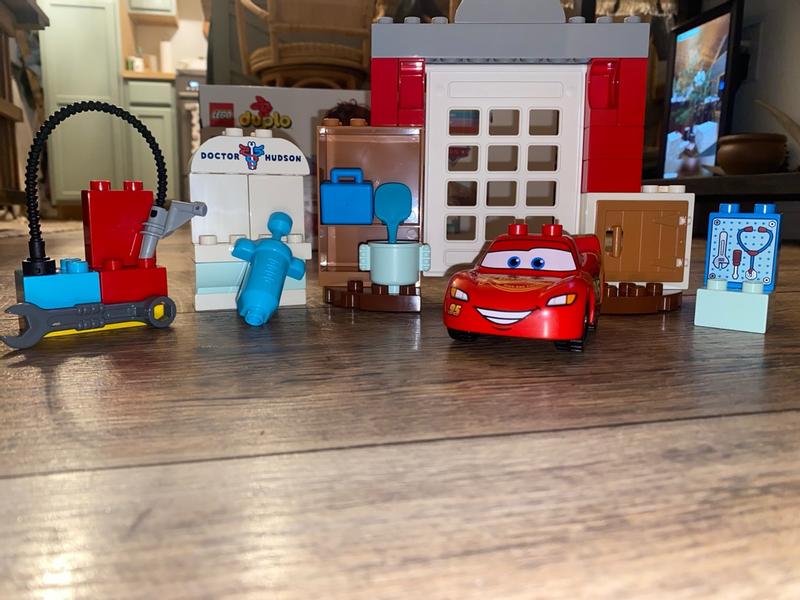 Этот набор Лего просто отличный! Собрать его легко, хотя малышам до четырёх лет может понадобиться помощь родителей. Не слишком объёмный — места занимает немного. Мой сын обожает машинку Лайтнинг МакКвин и катит её через гараж. В целом — очень понравилось этому игрушке!!