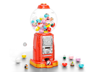 Стенд с разнообразными деталями минифигурок, чтобы собрать уникального человечка LEGO!