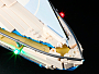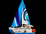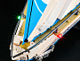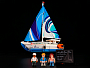 Система подсветки из 9 LED-огней оживляет парусник: навигационные огни на бортах, теплое свечение в каюте и яркие огни на мачте создают эффект ночного рейса. Съемная крыша позволяет разглядеть интерьер: уютная каюта с кроватью, камбуз с кухонными деталями, стол с бокалами и даже гитара для морских вечеров. В комплект входят 3 минифигурки — капитан в белой форме, девушка-путешественница и ее спутник. Вместе с ними вы сможете придумывать целые истории — от романтического круиза до смелого выхода в шторм.
