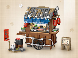 Стенд с разнообразными деталями минифигурок, чтобы собрать уникального человечка LEGO!