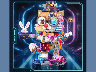 Стенд с разнообразными деталями минифигурок, чтобы собрать уникального человечка LEGO!