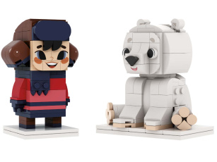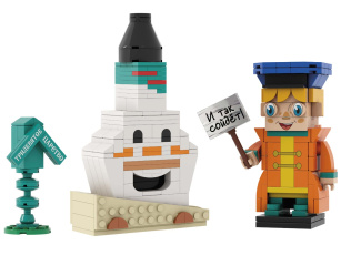 Стенд с разнообразными деталями минифигурок, чтобы собрать уникального человечка LEGO!