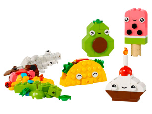 Стенд с разнообразными деталями минифигурок, чтобы собрать уникального человечка LEGO!