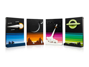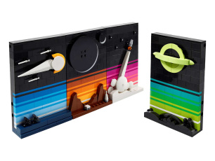 Стенд с разнообразными деталями минифигурок, чтобы собрать уникального человечка LEGO!