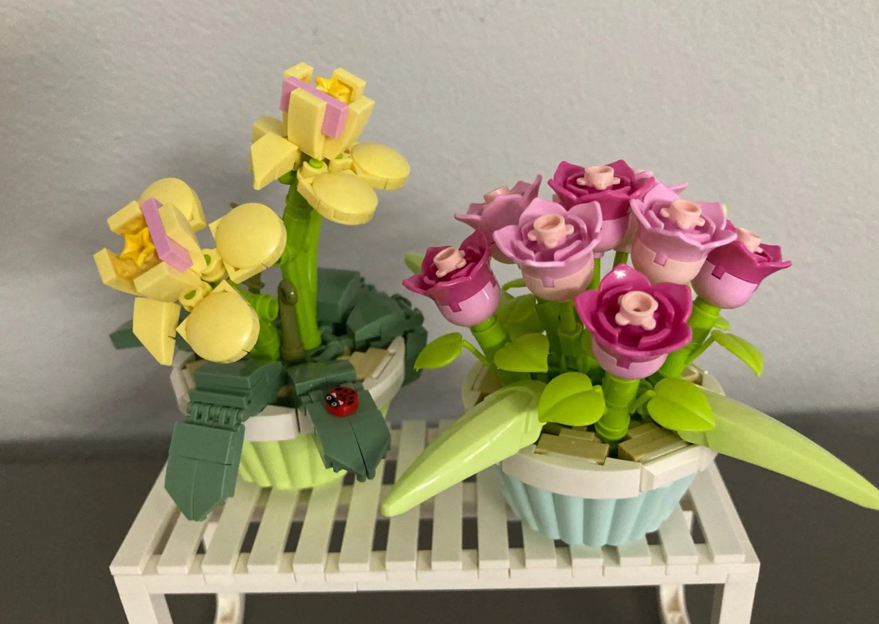 Я не особо прям собираю часто конструкоры, но этот набор в себя влюбил. Милейшие 3 горшочка с цветами, яркие. Понравилось что есть подставка. Выглядит в сборе шикарно. Идеальный вариант для подарка